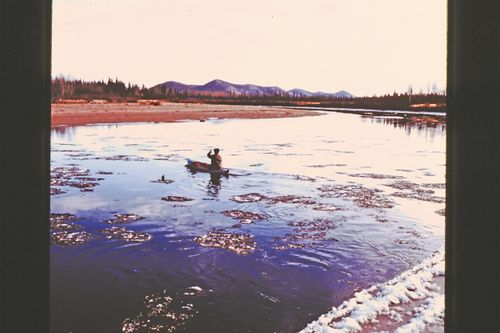 We spent the next couple days packing meat. Bob got another moose and a large wolf that had come down to the river to check out the moose kill sites. I had to ferry mine across the river in a ten foot long inflatable canoe. The river was running with slushy ice by this time. It would be only a week or so before freeze-up.
